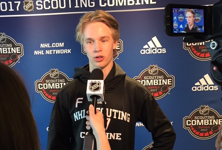 “Despite lacking some strength, he has proven himself to be a high end scorer and point producer. His puck skills are fantastic and he has a high hockey IQ. He makes use of his great hockey sense in many facets of his game and it shows up with his creativity and the way he makes great passes out of nowhere. We love that he can both score and pass the puck to help create plays. He’s one of the best thinkers in the draft class and when you combine that with his skill it creates a very desirable package.”