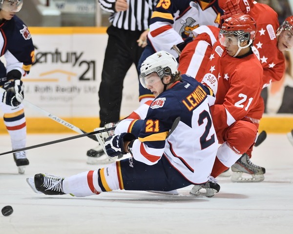 The Barrie Colts, Brendan Lemieux, entered our top 30 prospects ranking early in 2014 and held his spot with our first round grade in our final list released on June 6th, 2014. Lemieux has improved his skating this season and plays much like his father Claude with blend of greasy hockey and skill.