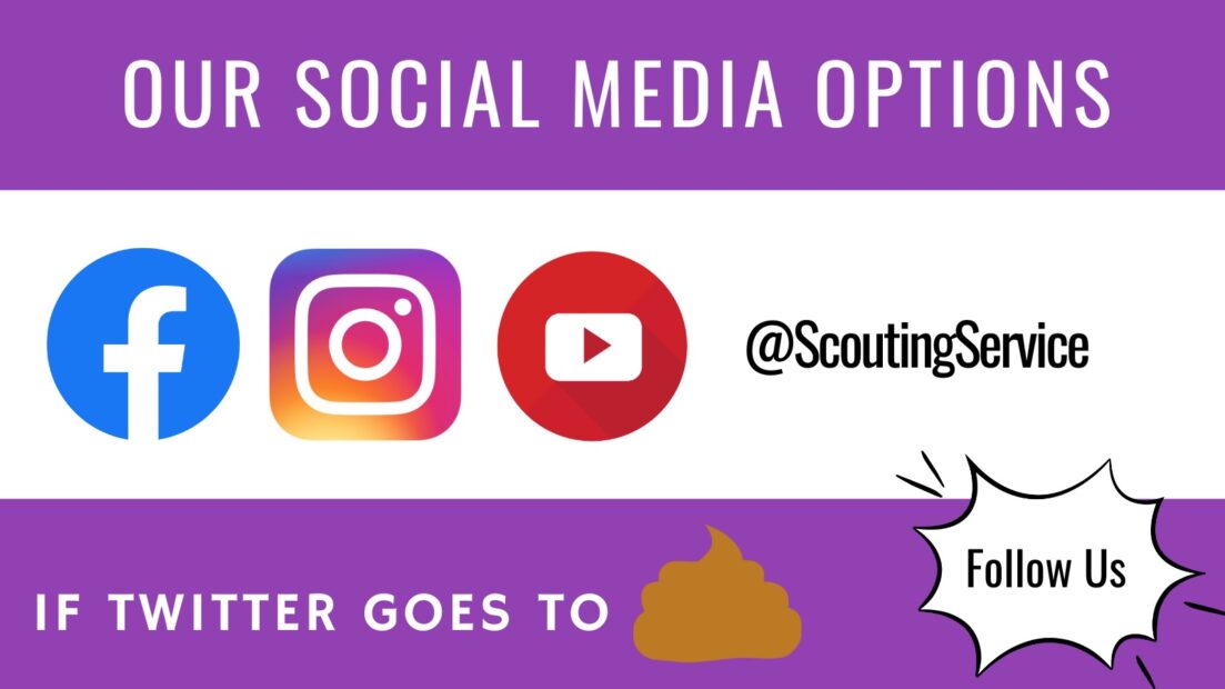 We have had this post ready and decided it might be a good time to publish it. The stability of Twitter is being questioned by many people and we want to be able to stay in touch with all of you just in case Twitter disappears sometime in the future. Our main Twitter account currently has 21,700 followers. That doesn’t include the thousands who follow our scout’s personal accounts. Twitter has been our main social media account we use to go alongside this website.
